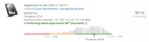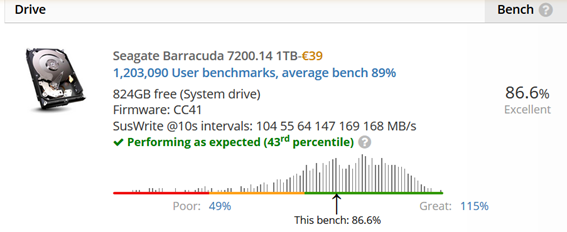 The hard disk (Seagate Barracuda SATA 7200 rpm 1TB) seems very slow. It is continuously in activity (it is very noisy).
