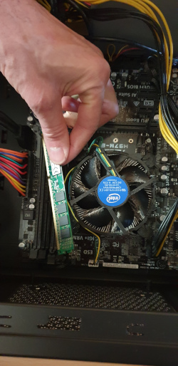 Installation of the SSD in its NVME slot. The module is sold without screw. Hopefully, a screw is available on the motherboard.