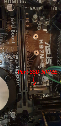 The overall performances have been increased but it is not obvious. The applications startup is still very slow. The hard disk is undoubtedly a bottleneck. Nowadays, the SSD is advised. So we could plan to install a SSD on the SATA bus. However, looking again at the motherboard and after verification in the ASUS documentation, a NVME slot is available.
